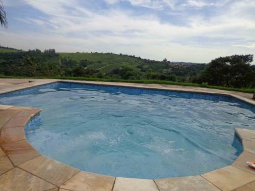 Com acabamento e piso frio,varanda,campo,pomar,poço caixa 5.000 litros,piscina pequena (spa com 02 bicos hidro e cascata ) |