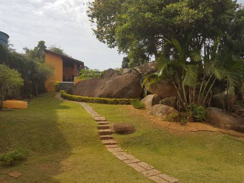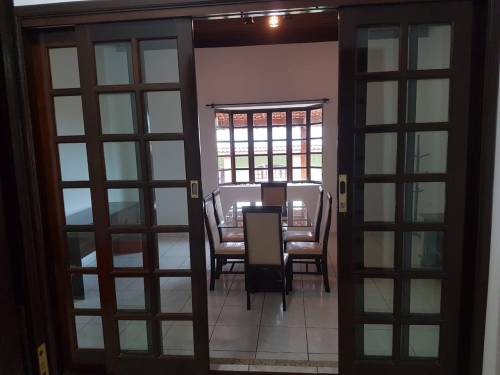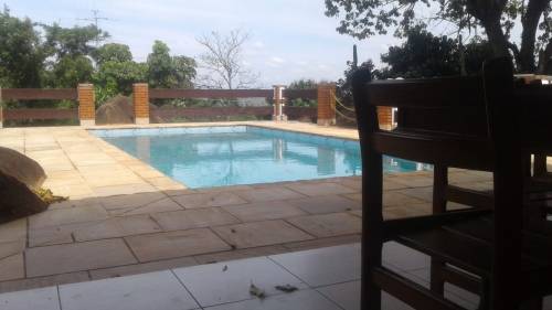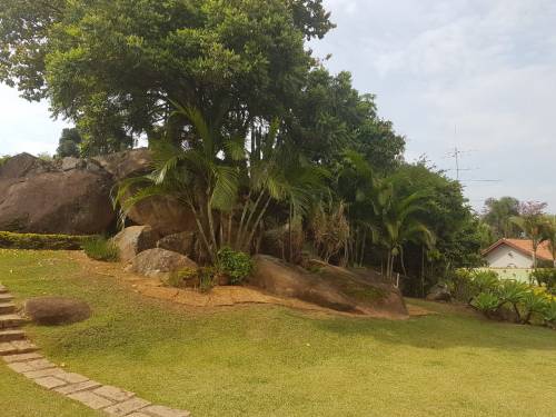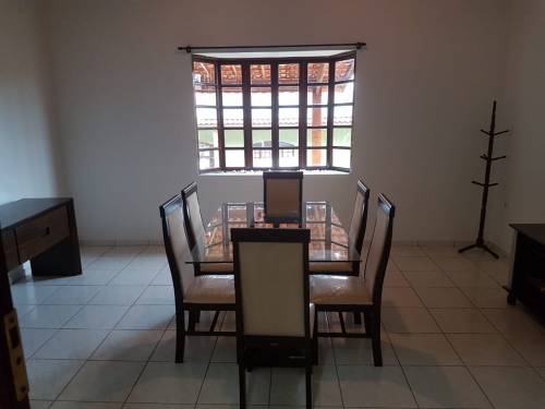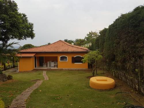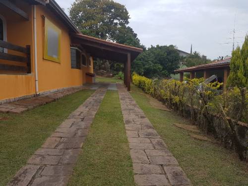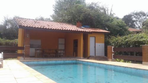 Chácara com portão de madeira, garagem coberta para vários carros,varanda,02 salas,04 dormitórios sendo 02 suites, banheiro social, cozinha, lavanderia coberta, quarto de ferramentas, edícula com churrasqueira, área gourmet, banheiro e piscina |