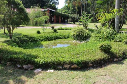 com 05 dormitórios 9 banheiros 03 suítes 10 vagas sala ampla piscina interna casa caseiro churrasqueira com forno lago pomar jardim . |