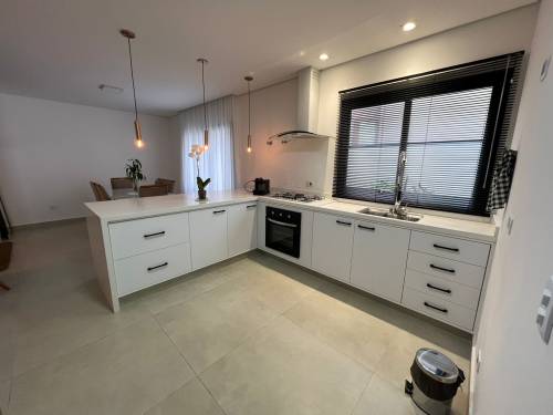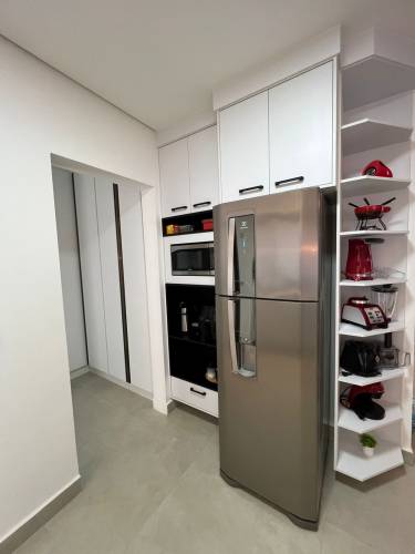 Piso inferior: cozinha com ilha sala jantar dispensa sala estar lavabo lavanderia