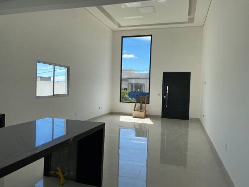 Casa com 03 dormitórios sendo 01 suíte,sala de jantar,sala de estar,pé direiro alto,cozinha americana com preparação com tubulações água quente,churrasqueira,porta de vidro,vista para o jardim,garagem coberta e descoberta para 04 carros,banheiro externo,área gourmet . |