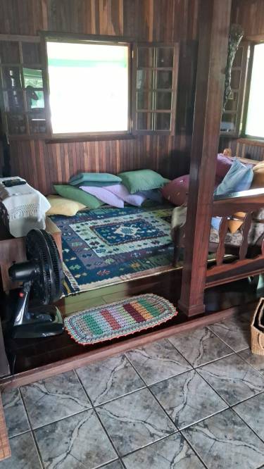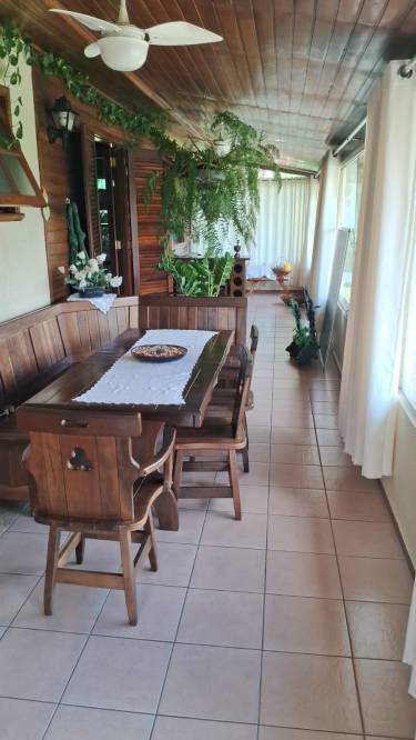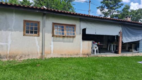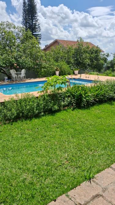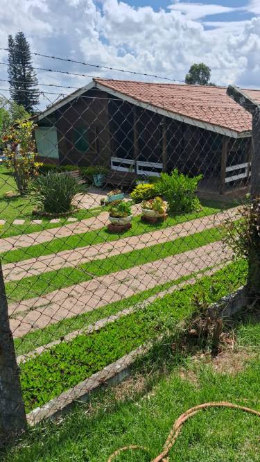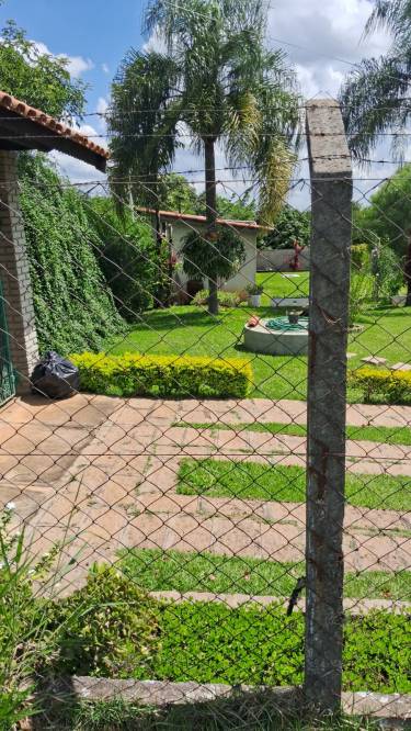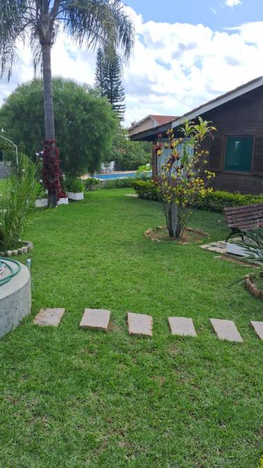 Chácara em condominio fechado com 03 dormitorios sendo 01 suite 01 banheiro social sala estar jantar e tv cozinha americana lavanderia piscina 4x8 alvenaria edicula com 02 dormitorios e área de churrasqueira área de pomar .